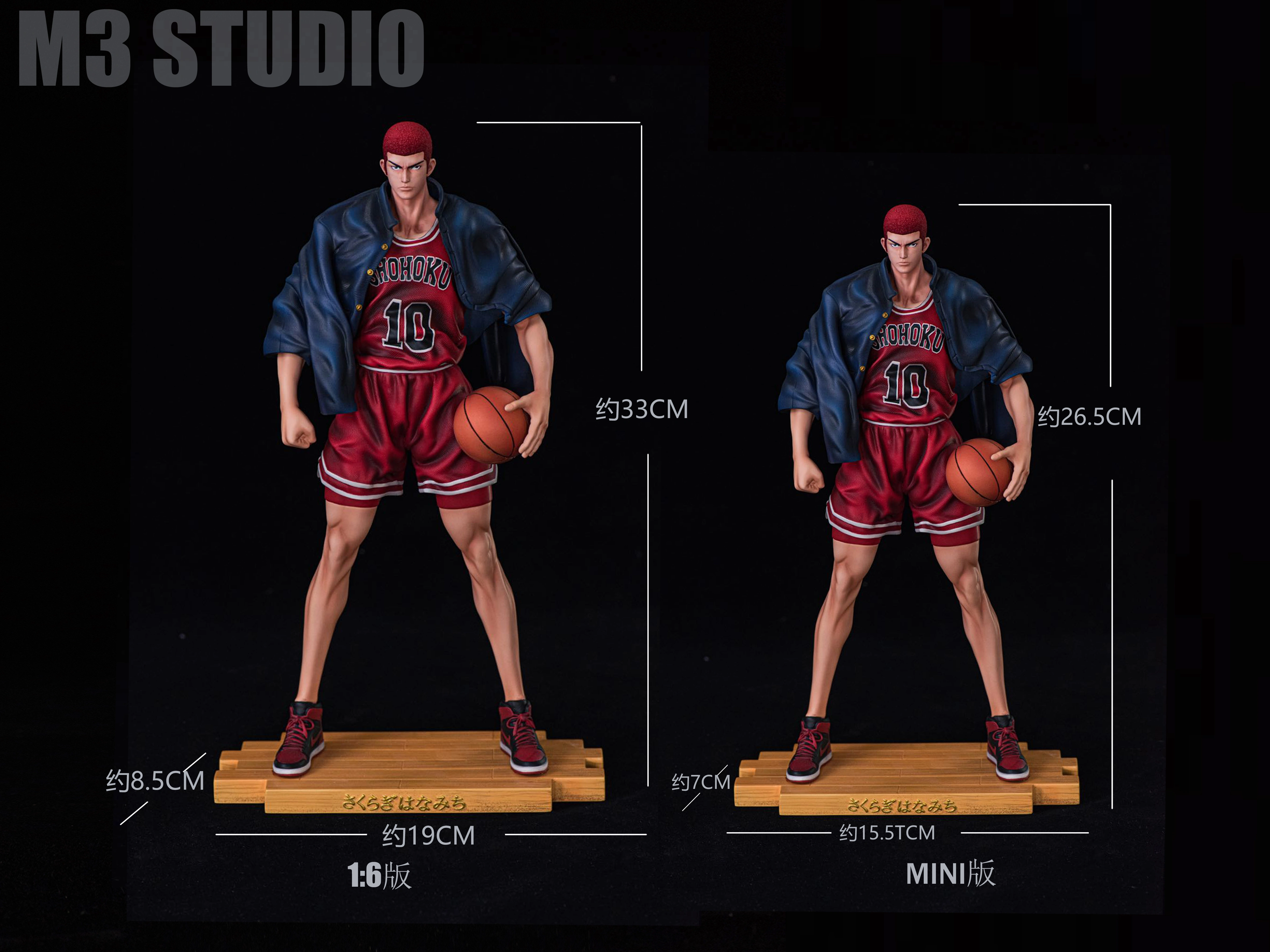 Celebrate M3 Studio’s 5th anniversary with the Shohoku vs. Sannoh special edition collection from Slam Dunk Resonance series. This GK statue captures iconic basketball rivals in dynamic poses: Sakuragi Hanamichi (1/6 & MINI, long/short hair variants with removable blue jersey), Rukawa Kaede (1/6 & MINI), and Sawakita Eiji (1/6 & MINI).