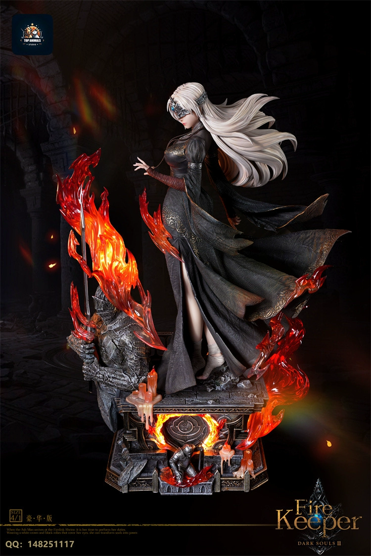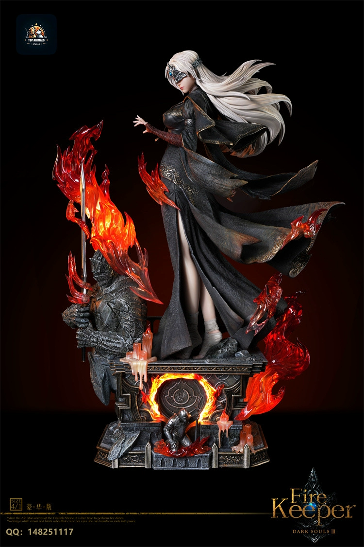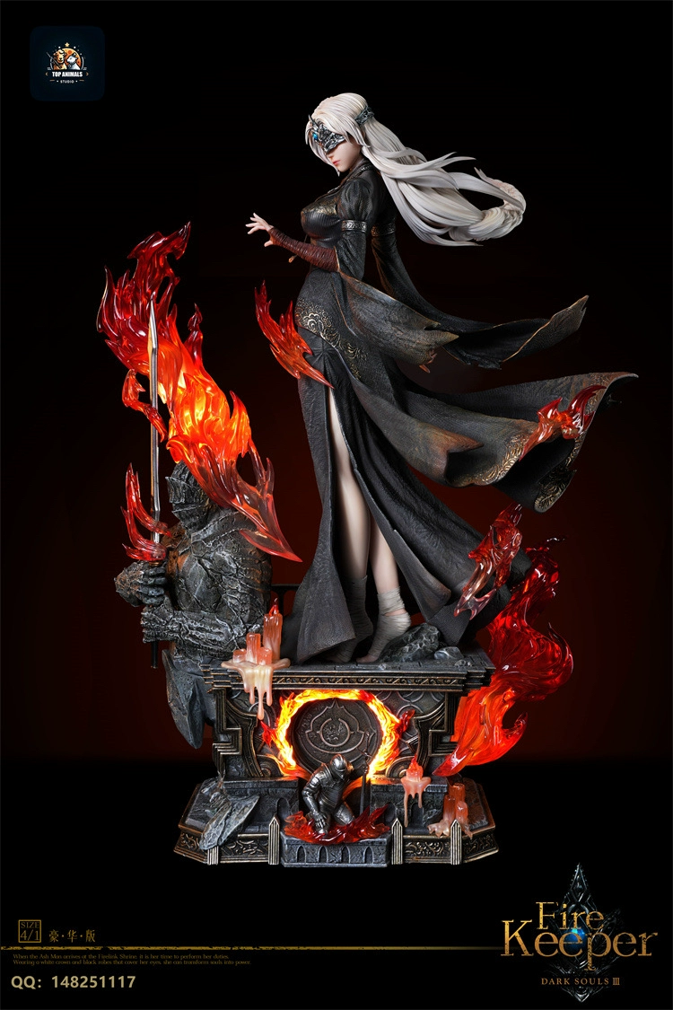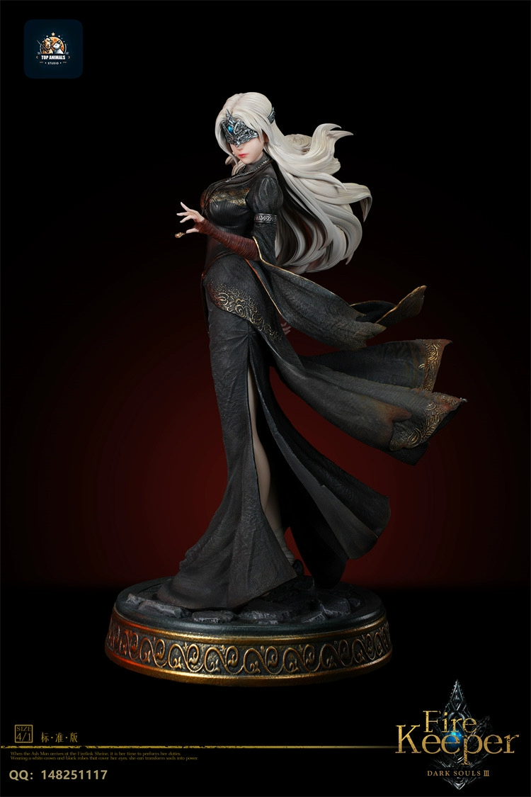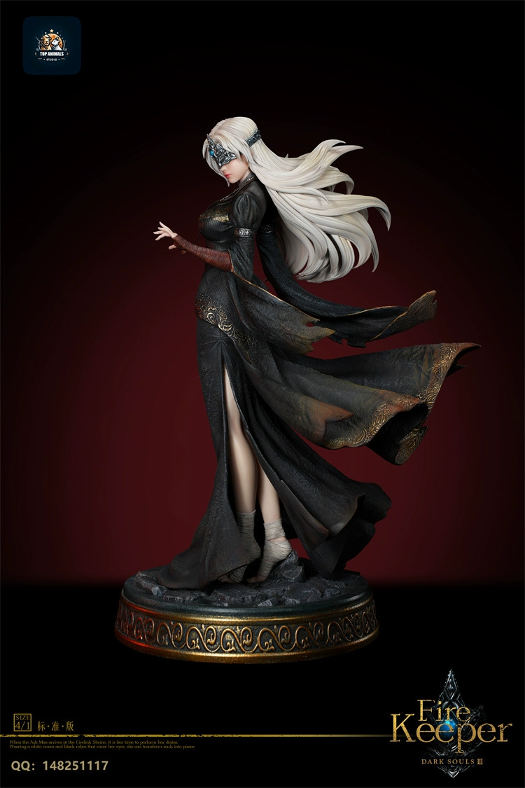 This statue depicts the Fire Keeper from the video game DARK SOULS III. The figure captures the character’s iconic appearance and serene demeanor as seen in the game.